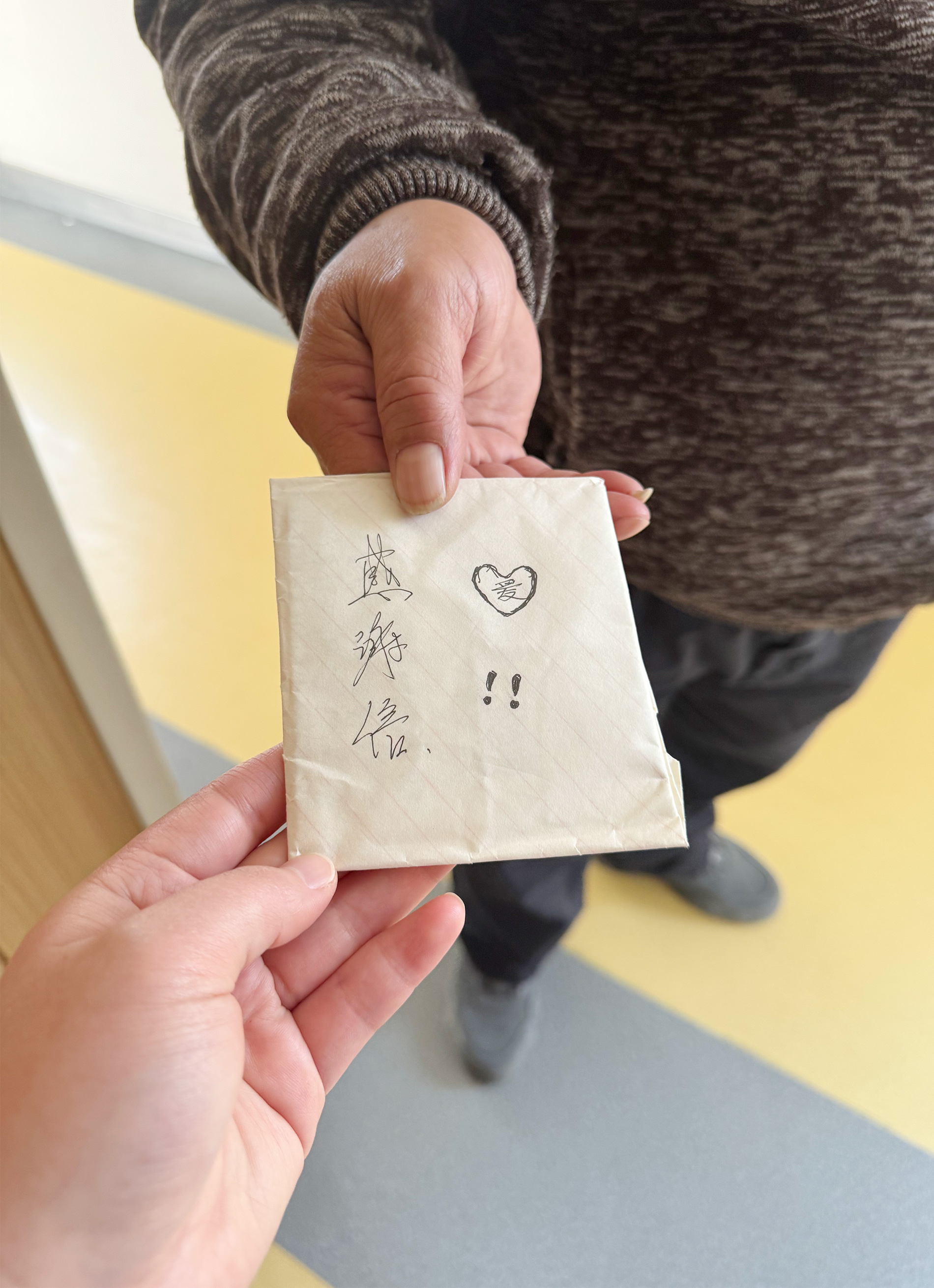 四年间,最让家属动容的是医护与护工团队超越“职责”的用心。因疾病原因,丘奶奶有时会莫名发脾气,连日常查体都抗拒配合,但老年康复护理中心的医护人员从没有过一丝不耐烦,而是用高度的敬业精神和严谨的态度,一次又一次温和地向丘奶奶解释检查的目的,一点点缓解她的躁动情绪。“你们不仅照顾我母亲的身体,还顾及她的心情,也给了我们家属莫大的心理支持。” 丘奶奶的儿子在信中感慨道。